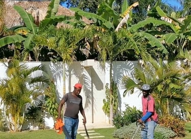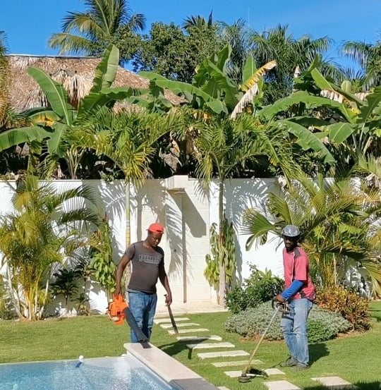 Dans ce jardin, rempli de plantes tropicales, tout pousse très vite ! C'est sans compter sur l'équipe de jardiniers d'Angy qui passera tous les mardis pour refaire une beauté au tapis vert de Flor De Coco !